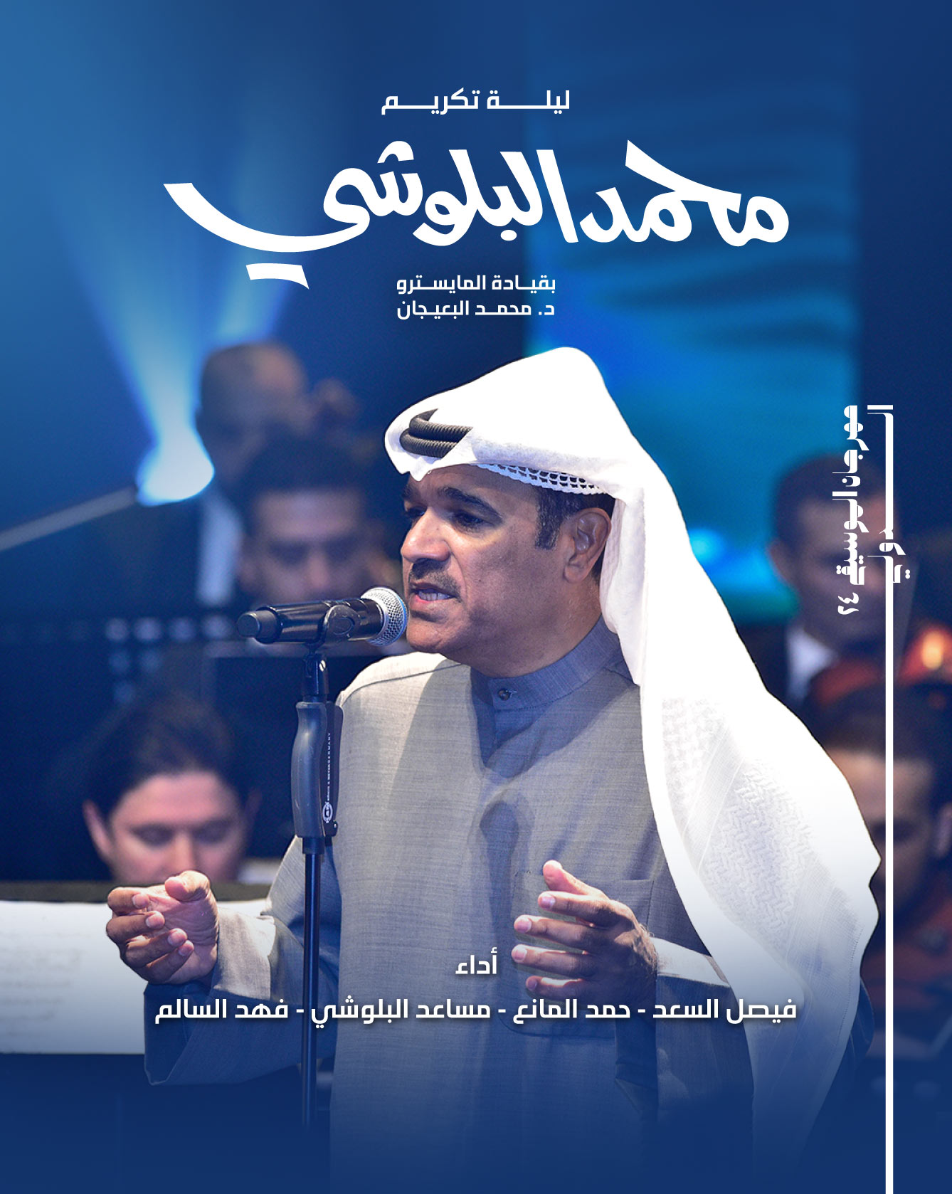تستضيف قاعة الشيخ جابر العلي الموسيقية في الفترة من 17-22 نوفمبر، الدورة الرابعة والعشرين من مهرجان الموسيقى الدولي الذي يقيمه المجلس الوطني للثقافة والفنون والآداب، ويتضمن حفلاتٍ غنائيةً موسيقية متنوعة. وتشمل الليلة الأولى، التي تقام بشكل استثنائي في المسرح الوطني، افتتاح المهرجان وأمسية غنائية تحتفي بالشخصية المكرمة لهذا العام الفنان الكبير محمد البلوشي، ويغني فيها الفنانون فيصل السعد وحمد المانع ومساعد البلوشي وفهد السالم بمشاركة الفنان المُكرم. يقود الفرقة الموسيقية المايسترو د. محمد البعيجان.